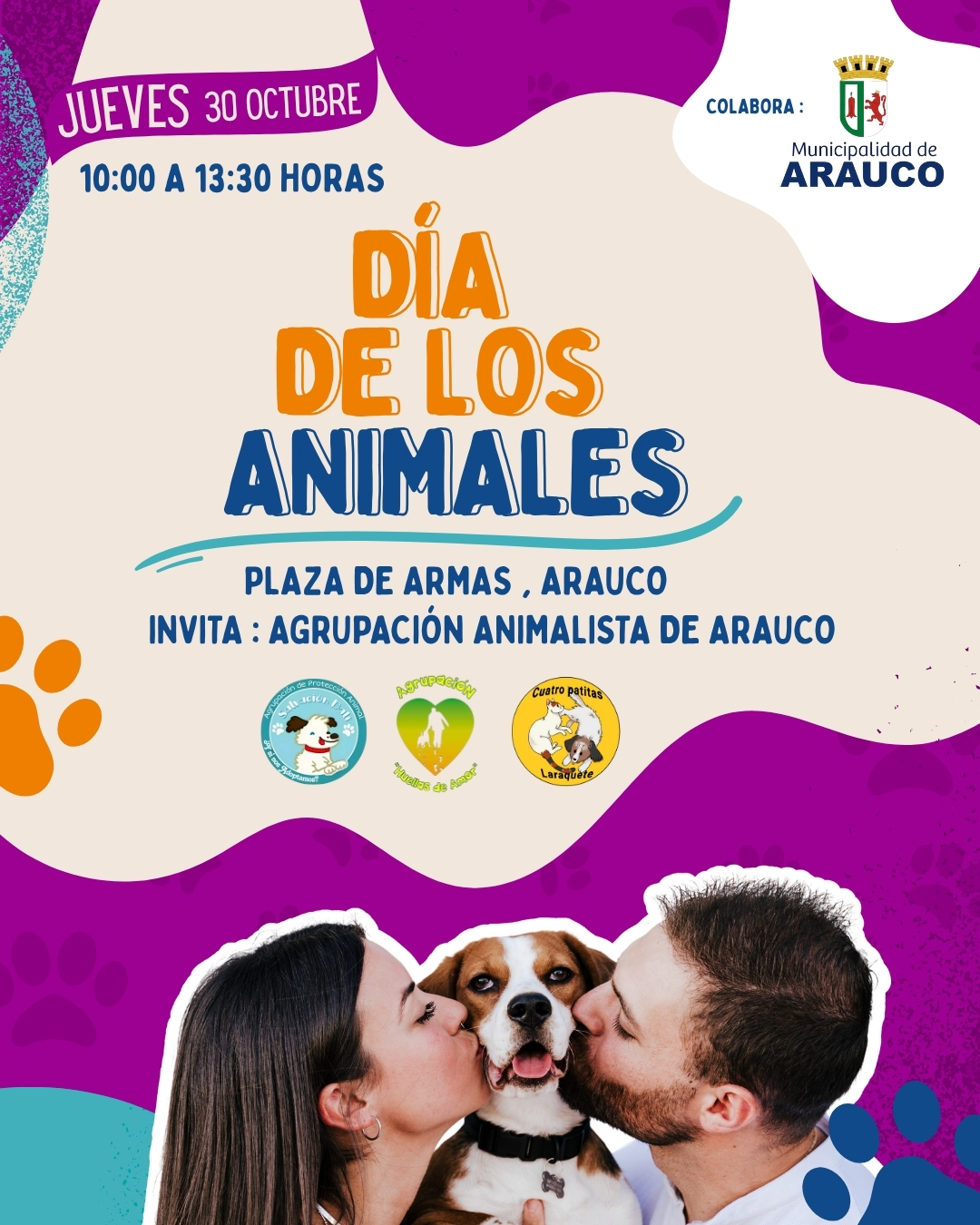 La Delegación Presidencial Provincial de Arauco y diversas agrupaciones animalistas locales, invitan a la comunidad a participar en la conmemoración del Día de los Animales, actividad que busca promover la tenencia responsable de mascotas, sus cuidados y bienestar.