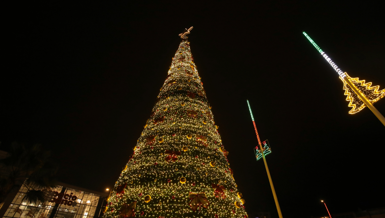 La estructura del árbol navideño mide más de 20 metros de altura y se suma a otros tres ubicados en las calles Rica Aventura con Oficina Poderosa, playa El Trocadero y en la explanada del Estadio Regional, en el sector sur, donde se realizará una mini plaza navideña que complementa la feria de emprendedores organizada por Fomento Productivo de la Dirección de Desarrollo Comunitario.