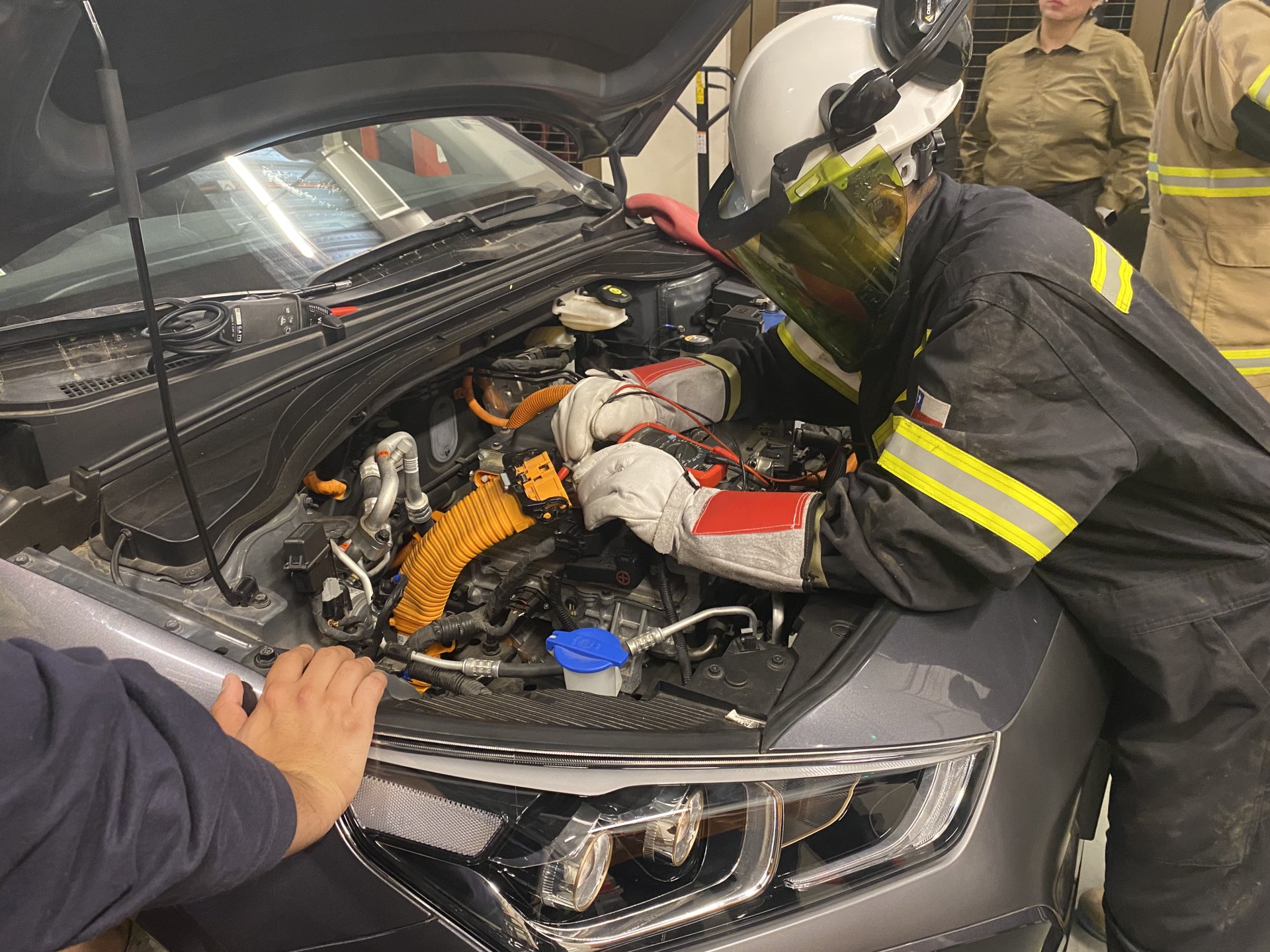 El curso, de 20 horas pedagógicas impartidas durante dos sábados consecutivos, abordó contenidos esenciales para la intervención segura en siniestros que involucren vehículos eléctricos. Entre ellos destacan conceptos técnicos de funcionamiento, procedimientos de desconexión de alta tensión, uso adecuado de equipos de protección personal (EPP) y medidas de resguardo ante escenarios de colisión o incendio, tanto en automóviles como en buses eléctricos.